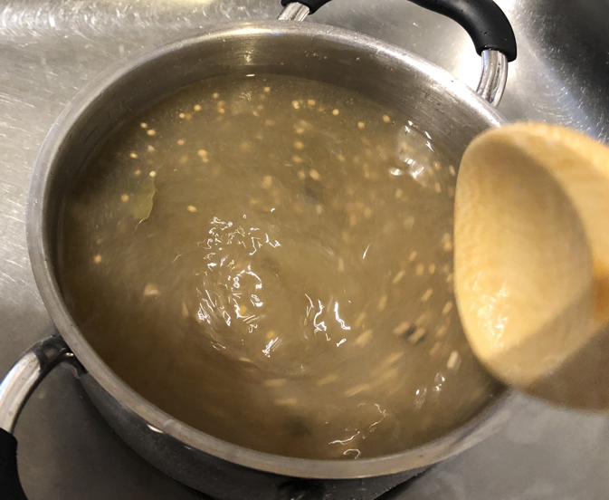 - 1 Liter Wasser in den Topf zum Aufkochen.