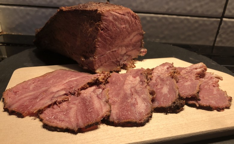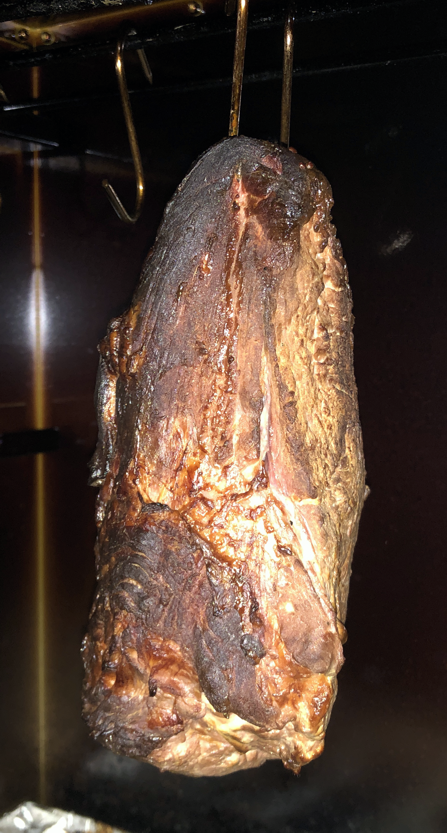 - Jetzt den Räucherschrank ausschalten und das Fleisch über Nacht abkühlen lassen.