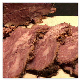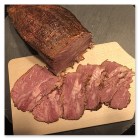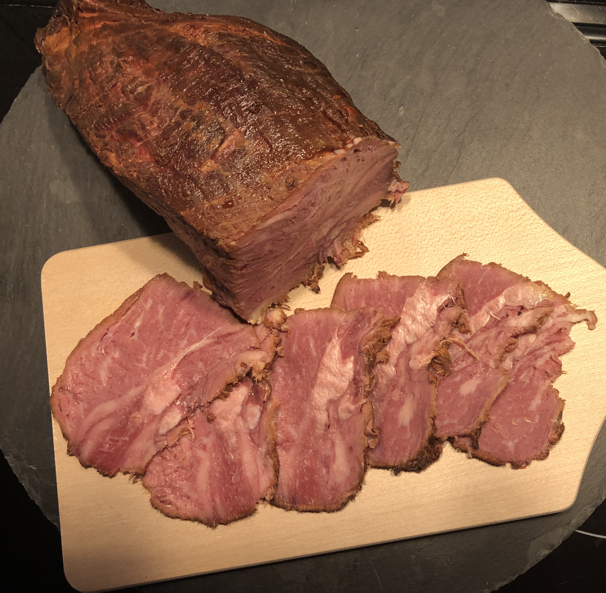 - Das Fleisch wird mit Pökelsalz eingerieben und für mindestens 3 Tage eingelegt.