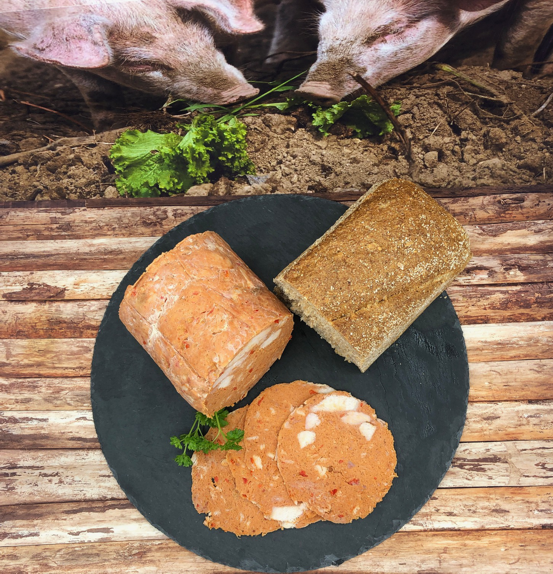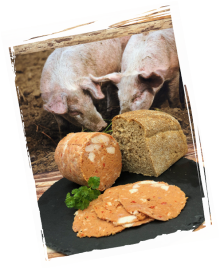 - Das Schweinefleisch wird in Scheiben geschnitten. 1 Liter Wasser kommt in einen Kochtopf, 2 Teelöffel Pökelsalz und 2 Esslöffel Einmachgewürz wird mit den Fleischscheiben für 20 Minuten gekocht.