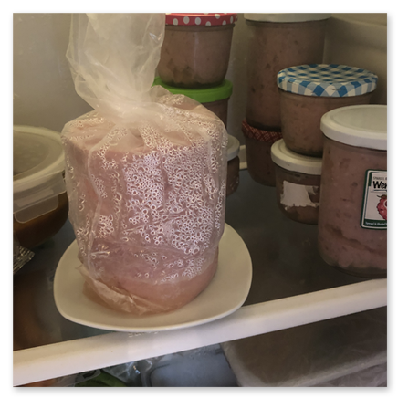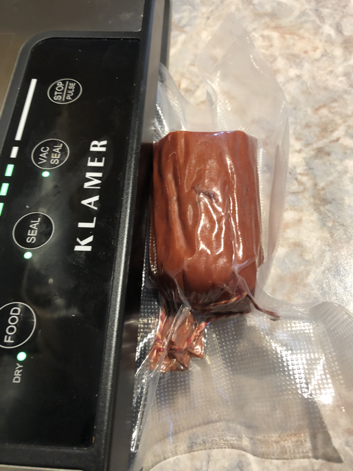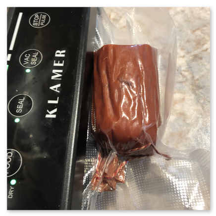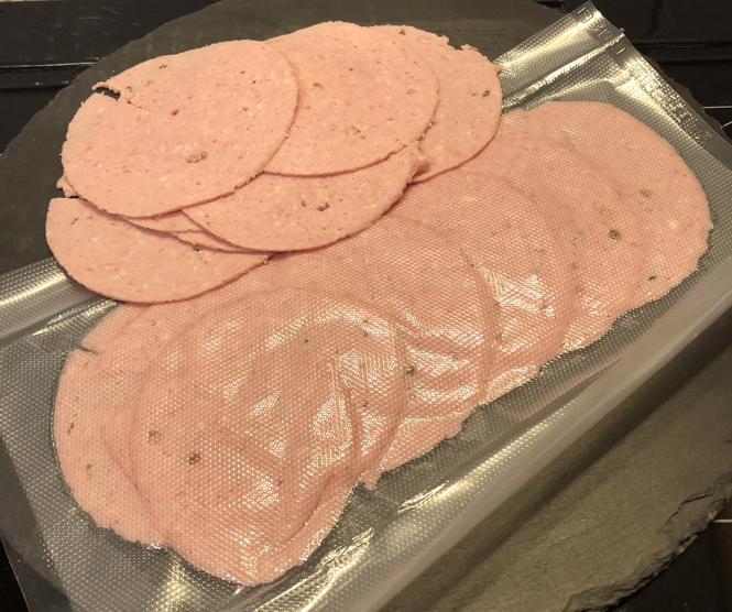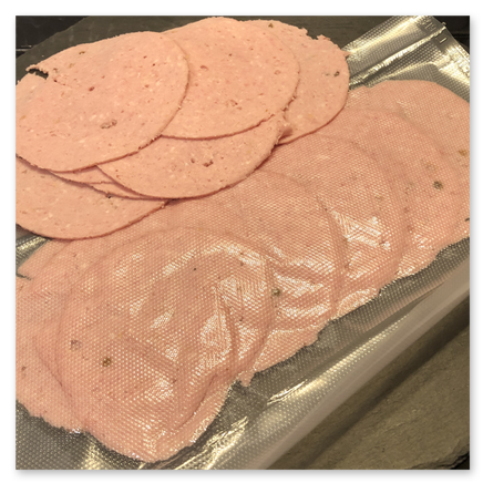 - abschließend mit der Wurstschneidemaschine in Scheiben geschnitten, vakuumiert und eingefroren.