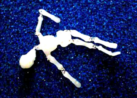 Natürlich sehen dies Plastik-Hampelmänner nach nicht aus. Mit einem heißen Schneidegerät werden die Ringe abgetrennt und die Knochen mit dem Heißluftfön gebogen. Etwas Farbe, Lack und Sand - schon sieht das Ganze natürlich aus.