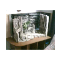 Bevor die Felsrückwand auf der Platte mit Schraube und Unterlegscheibe befestigt wird, sprühe ich die Fläche auf dem Sperrholz mit schwarzer Farbe ein, die hinter der Fuge der beiden Teile der Aquariumrückwand liegt, die an dieser Stelle zusammengefügt sind (siehe Rückwand). Ein "Blitzen" der Rückwand wird dadurch vermieden.