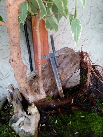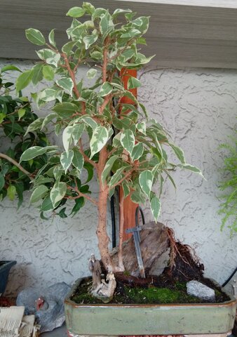 Golden King in Flossform. Als Steckling groß gezogen wird der Stamm in die Erde gelegt. Die Spitze und die starken Äste werden nach oben ausgerichtet. Der umgefallene Baum muss sich in der Erde neu verwurzeln. Neue Tiebe werden nach oben ausgerichtet. Wie Masten auf einem Floss.
