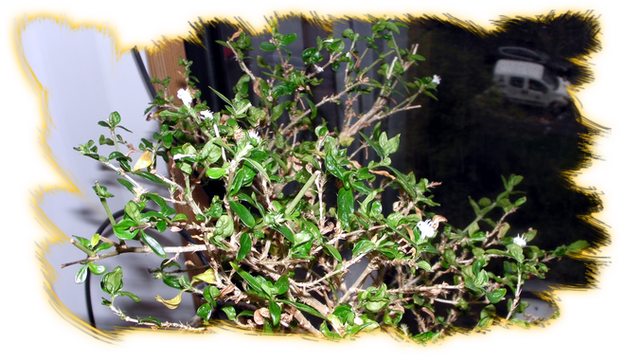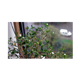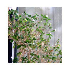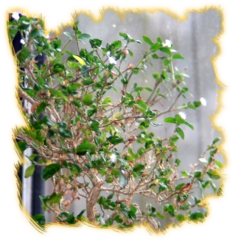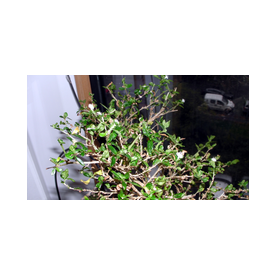 2013 hat das Bäumchen das erste mal geblüht. Da ich gute zwei Wochen nicht anwesend war, konnte ich nur noch einen kleinen Teil der Mini-Blüten bewundern. Der Baum heißt auch "der Baum der tausend Sterne", weil die ganze Pflanze mit diesen, maximal 5mm größen, weißen Blühten übersät ist. Bei diesem Bonsai ist die Blüten von Natur aus im "richtigen Maßstab". Blätter lassen sich in der Größe beeinflussen - Blüten jedoch nicht.