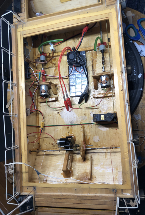 Die Putzkolonne ist durch. Der erste Schritt war die Entkernung des Schiff-Rumpfes. An Stelle der alten 2-Kanal-Steuerung wird eine mehrkanalige Anlage eingebaut. Empfänger und Fahrregler für zwei Motoren werden gewechselt.