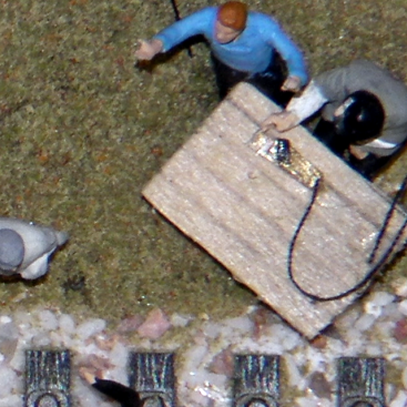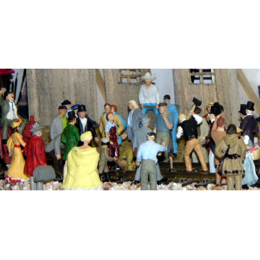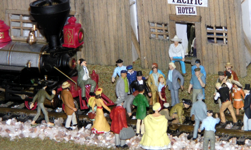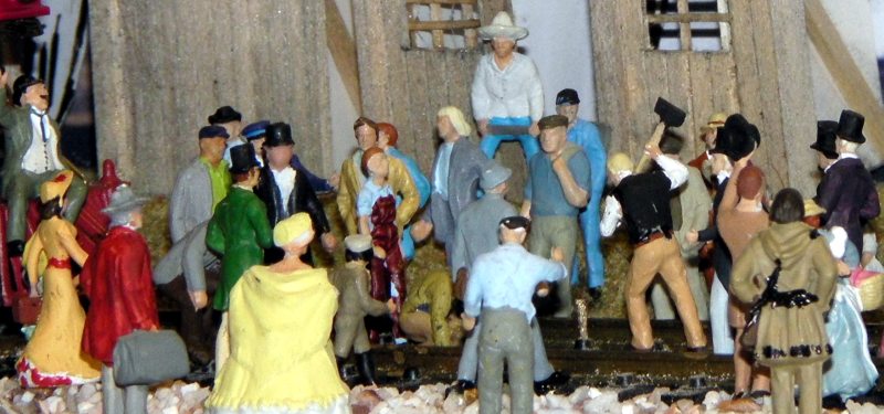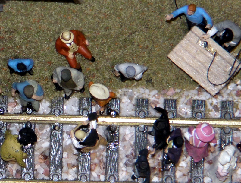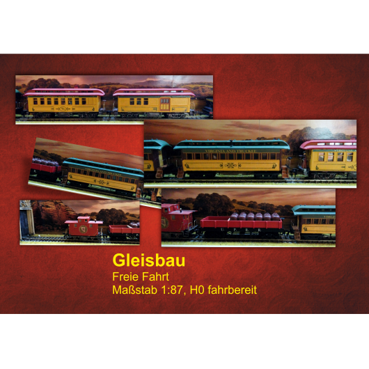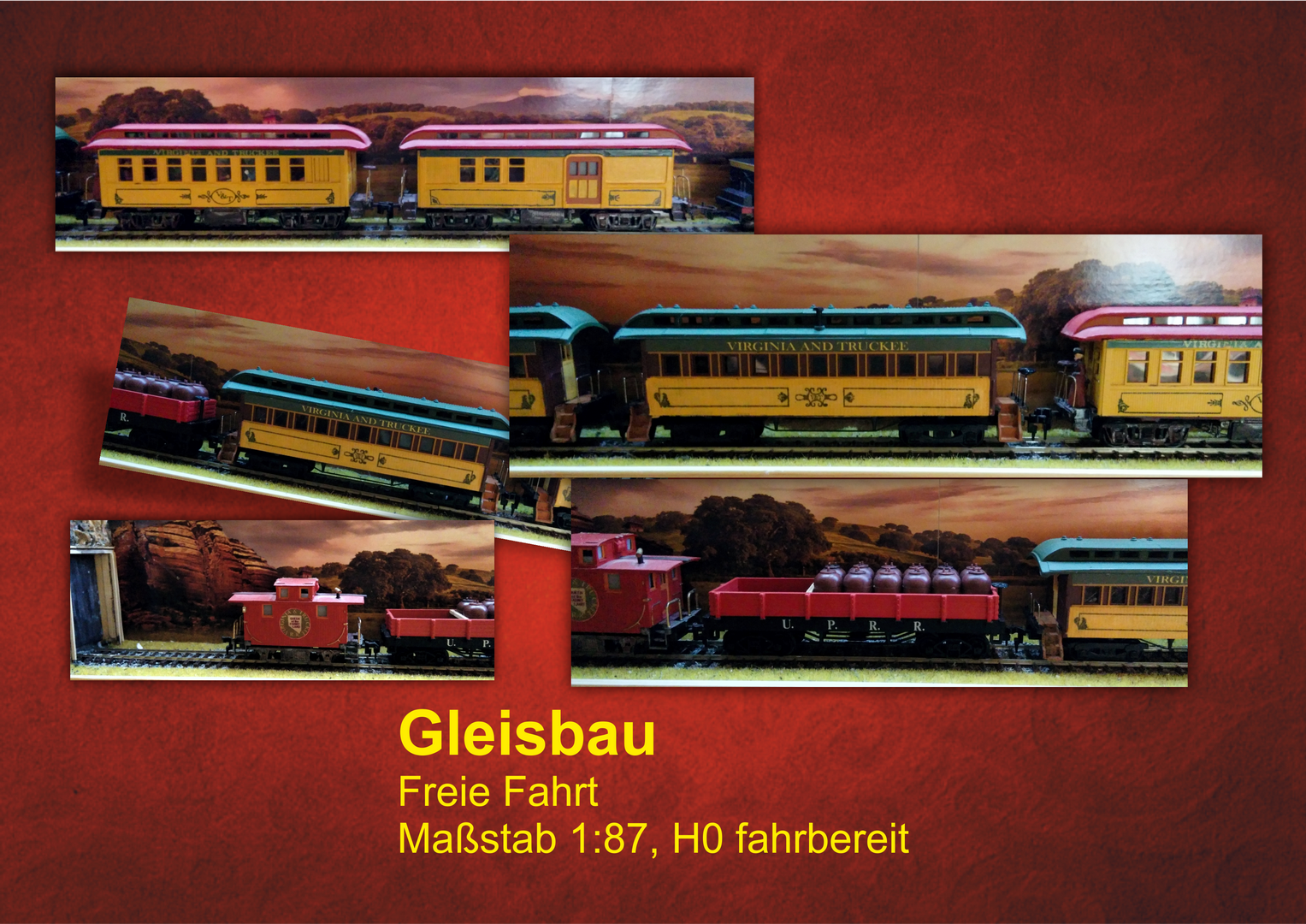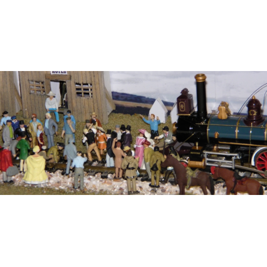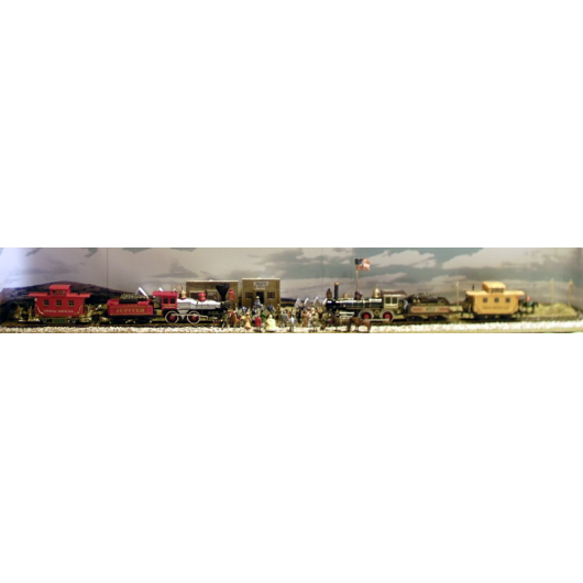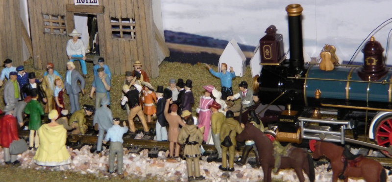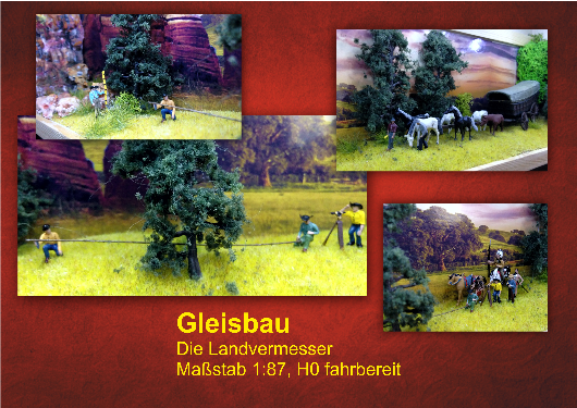 Die Dioramen oben zeigen einen typischen Werdegang der Entstehung einer Eisenbahnlinie. Alle nachfolgenden Bahnstrecken machten die gleiche Entwicklung durch bis zur Freigebung der Bahn.