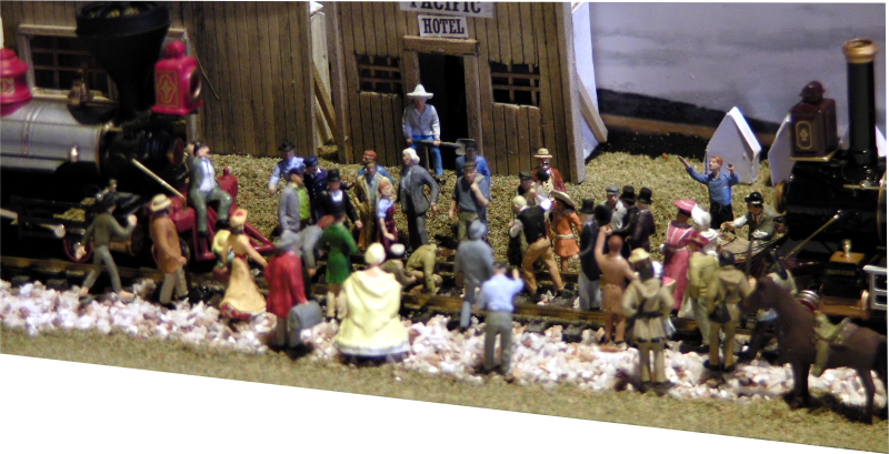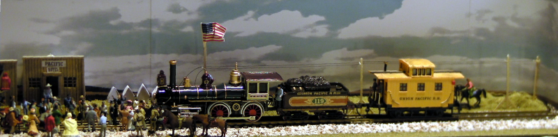 Zwei Eisenbahn Gesellschaften kämpften um jeden Meter. Von Westen über die Rocky Mountains kam die Central Pacific Railroad; vom Osten bemühte sich die Union Pacific Railroad am besten abzuschneiden. Beide Gesellschaften kämpften ums Überleben. Die Zukunft zeigt, dass sich die Union Pacific durchgesetzt hat. Sie schluckte die Pacific Railroad. Aber das sollte noch einige Jahre dauern.