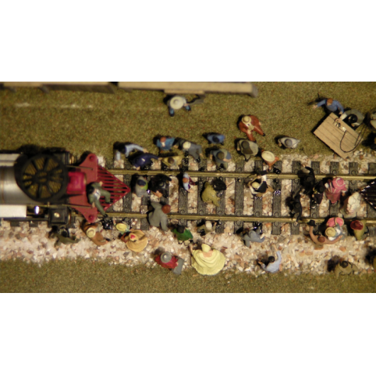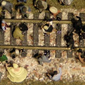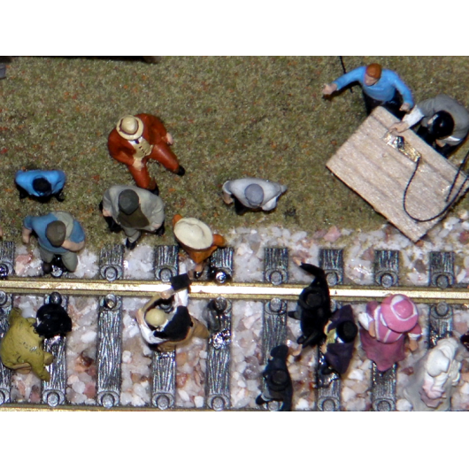 Die Arbeit der Schienenleger ist nicht zu unterschätzen - auch mehr publiziert worden, als der schwere Teil der Trassen-Bildung durch die Chinesen. Knochenarbeit blieb es aber dennoch. Meist arbeiteten die Eisenbahngesellschaften im Wettbewerb unter einander. Fast ausschließlich alles in Handarbeit, lag das durchschnittliche Tagespensum bei 6 Meilen am Tag. Der Rekort lag bei 10 Meilen am Tag.