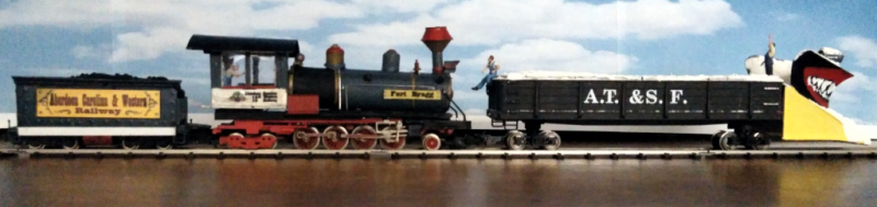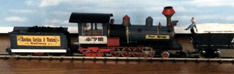 Die Schmalspur-Dampflok 2-8-4 "Fort Bragg" der Aberdeen Carolina Western Railway ist in dieser Ausführung nie gefahren. Es handelt sich dabei um eine fantsievolle Ausführung bestehender Modelle in H0 und Schmalspur - ein Phantasieprodukt.