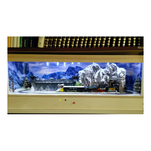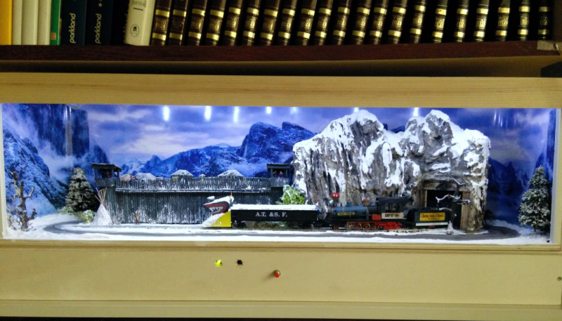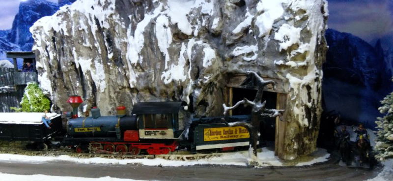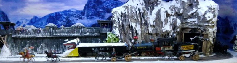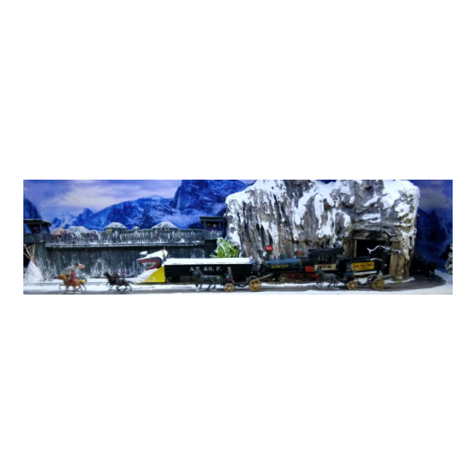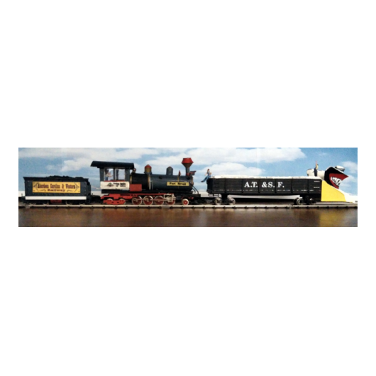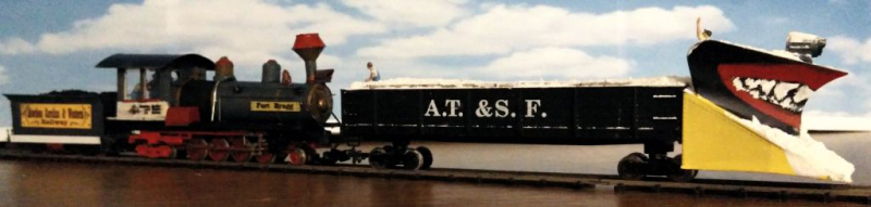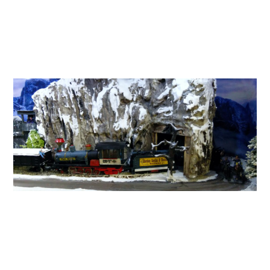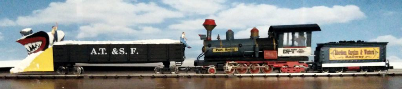 Das Modell ist eine Schmalspurausführung H0e der Firma Egger. Der Caboose ist eine eigene Konstruktion - entstanden aus einem Passagierwagen der Modellreihe. Szenen, die ähnlich in den Filmen vorkommen, werden nachgestellt.