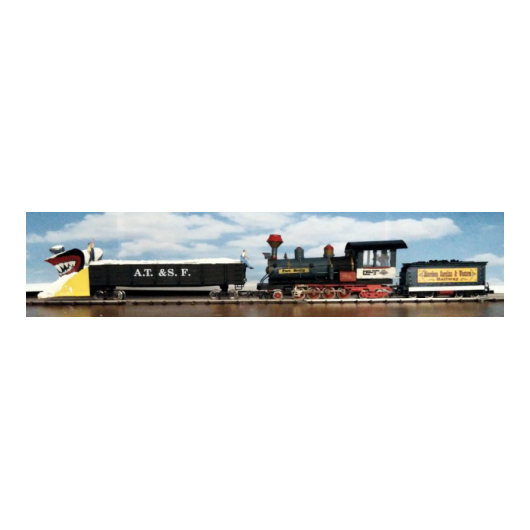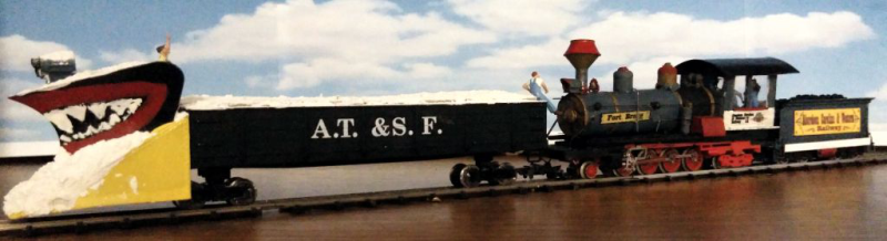 Auch der Zug selbst existierte in dieser Bauweise nicht. Die Schmalspureisenbahn wurde, wie die Lok im echten Film, auf "Western" getrimmt.
