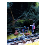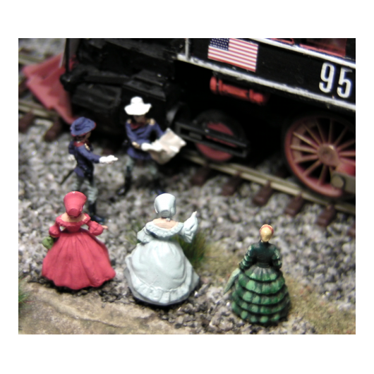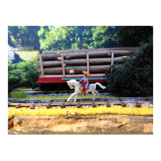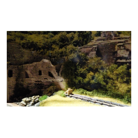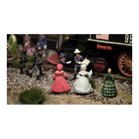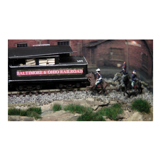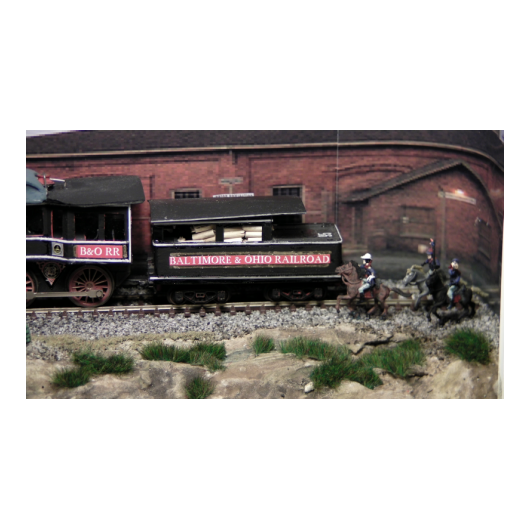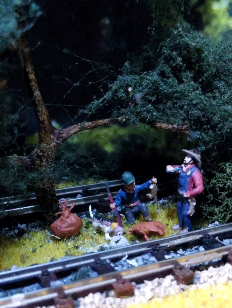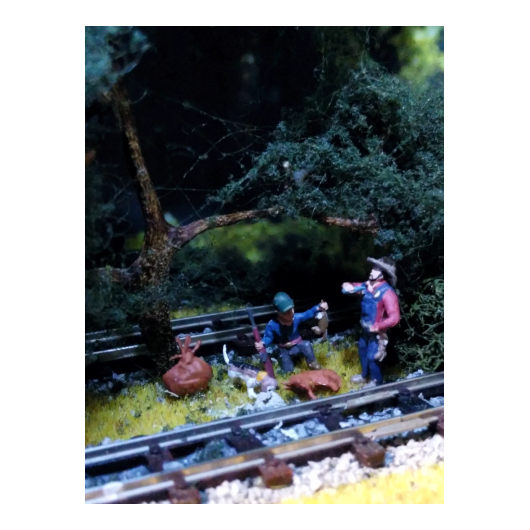 Die Lok wurde auf einem N-Spur-Modell aufgebaut. Die Wagons der alten bayrischen Eisenbahn in den Stil der typischen Westernzüge umgebaut. Büffel und Jäger stammen aus mehreren Überresten alter 1:72 Figuren. Insgesamt bevölkern 85 Büffel die Anlage.