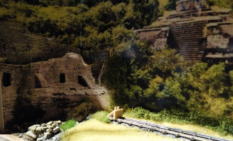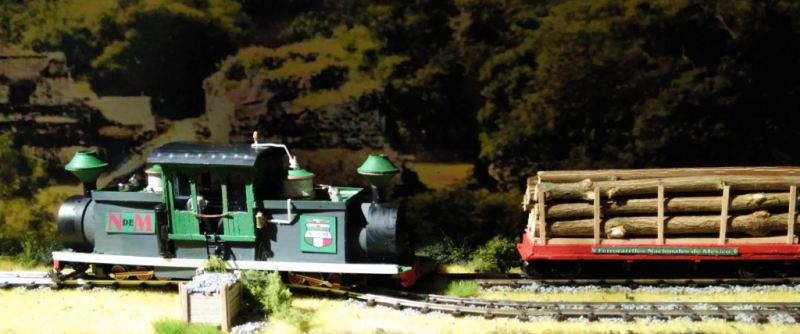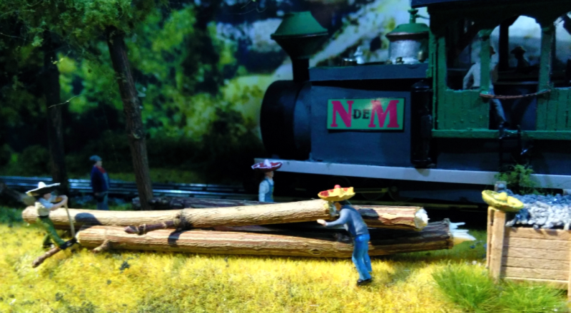 Der ausgestellte Zug der Atichikon and Topeko 0-4-0 ist als Wirtschaftszug für einen Forstbetrieb dargestellt.