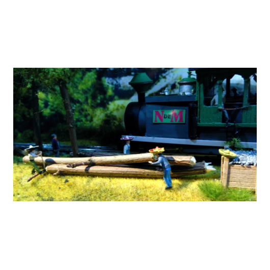 Ephraim Shay (1839 – 1916) hat diese Wald-Lokomotive - Heisler - speziell für den Holzabbau konstruiert und patentiert. Viele verschiedene Modell dieser Arbeitslokomotiven lösten den Betrieb mit Pferden und Ochsen ab. Die Bäume wurden fortan mit diesen Loks zu den Sägemühlen oder den nächstgelegenen Fluß befördert, auf dem dann die geschlagenen Stämme zur jeweiligen Sägemühle geflösst wurden. Die Loks sind langsam aber stark.