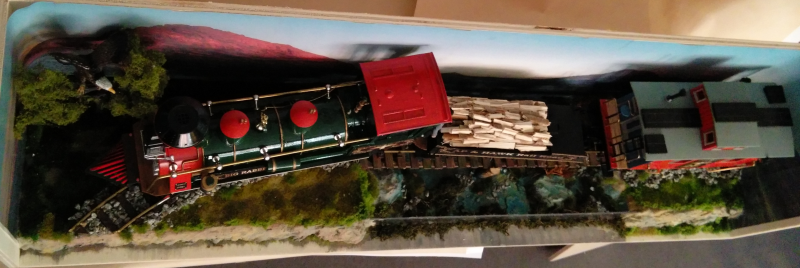 Eine existieren Lokvariante sollte es nicht werden. Es war ja schließlich eine erdachte Eisenbahngesellschaft. Zur damaligen Zeit waren Schmalspurbahnen nicht selten. Also sollte es eine Schmalspurvariante werden. Eine Schmalspurlok geeignet für den Personen- und Gütertransport. Der Gedanke für eine Dampflok 4-6-4 mit dem Namen "BIG RABBIT" war geboren. Der Maßstab des Modelles ist die Spurgröße IIe (ca. 1:25). Einzelteile aus den Beständen der LGB-Bahn und der Spur 0 fügten sich zu dieser Lok mit Holztender auf Drehgestellen zusammen. Das Modell ist fahrbereit und fährt auf der Spur 0 der Faller e-Train.