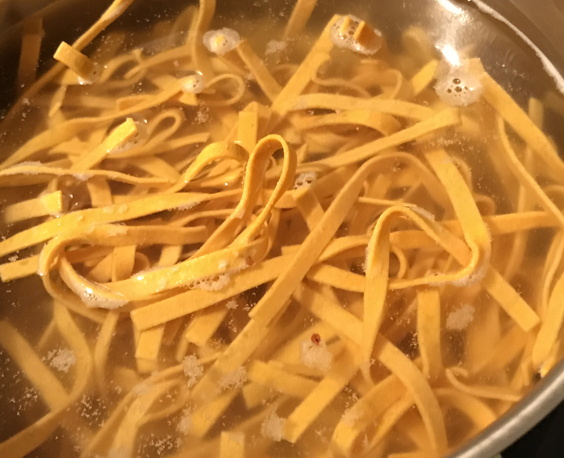 - Bandnudeln in der Pfanne mit Butter wenden - nicht anbraten