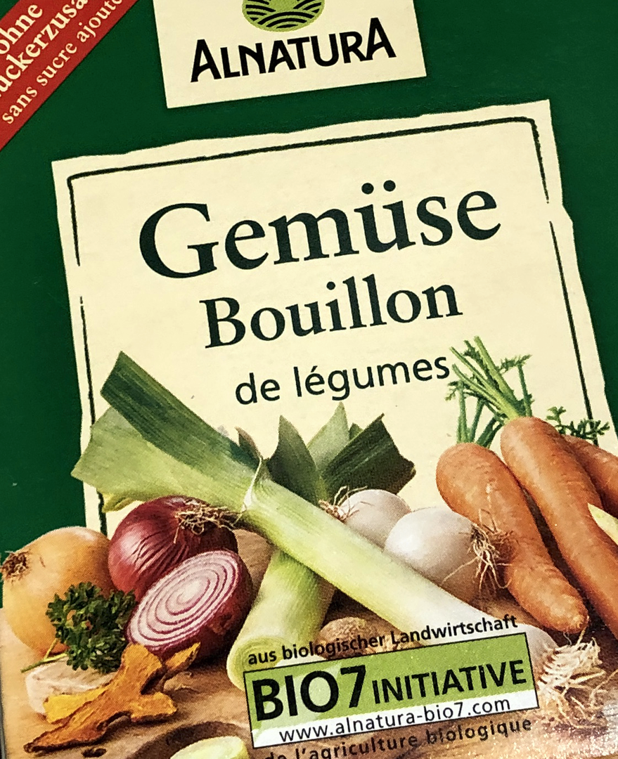 - Gemüsewürfel, Maggi, Salz und Pfeffer dazu geben