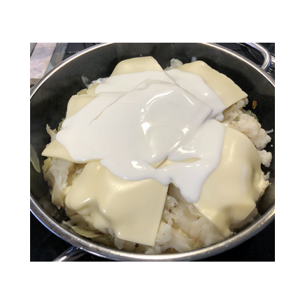 - dünne Schicht granulierte Zwiebel aufstreuen